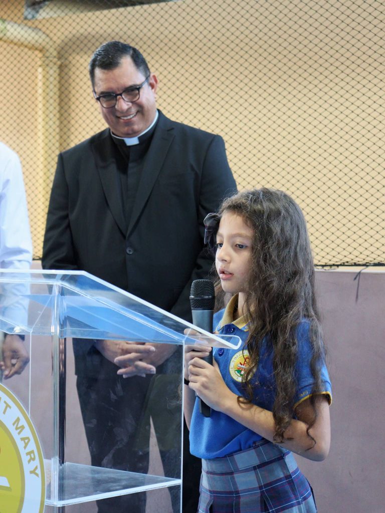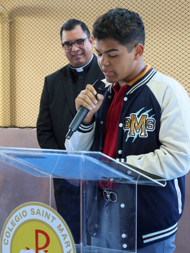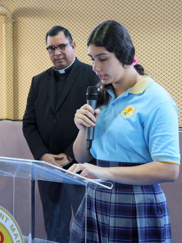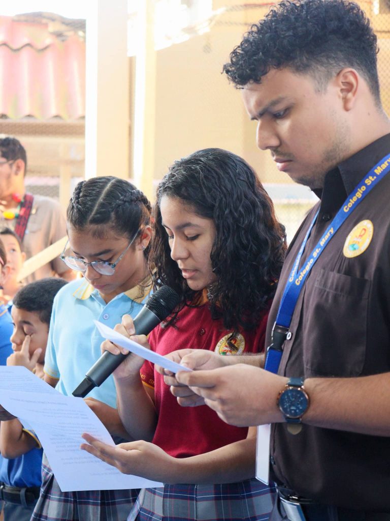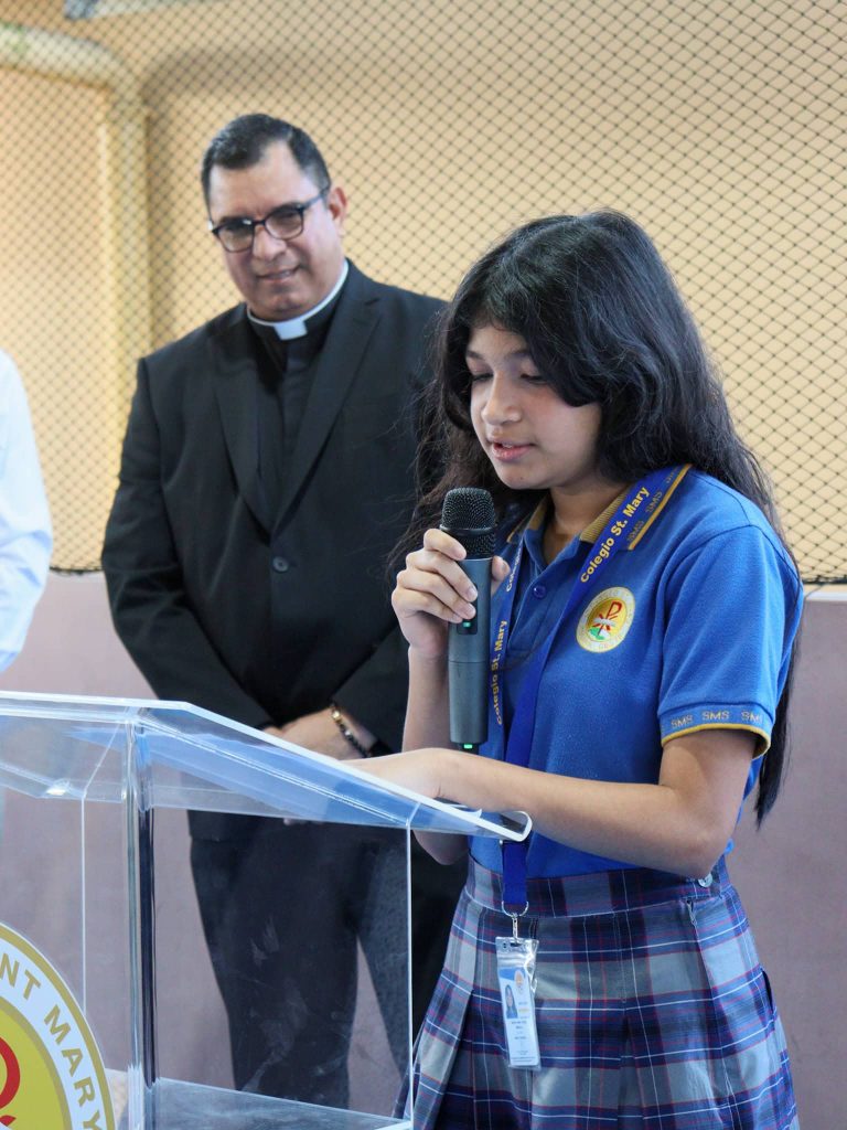 El acto se desarrolló en un ambiente de alegría y orgullo compartido, en reconocimiento a su reciente proclamación como Rector Magnífico de la Universidad Católica Santa María la Antigua, la primera universidad particular del país, realizada el miércoles 17 de diciembre en la Catedral Basílica Santa María la Antigua, al cual asistieron nuestros estudiantes de media y premedia.