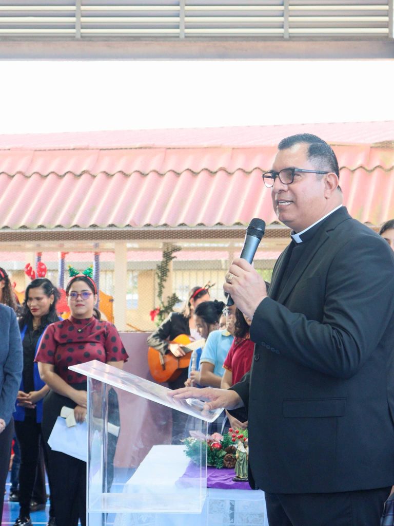 Como muestra de apoyo y felicitación, el viernes 19 de diciembre se realizó un emotivo homenaje en el que estudiantes y padres de familia expresaron sus más sinceras palabras a nuestro director, el Pbro. Dr. Jorge Rivera-Rodríguez Rodríguez.