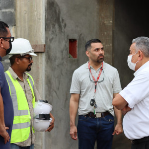 El recorrido abarcó algunos de los salones de la planta baja, así como la planta alta misma que, en días pasados, fue realizada la instalación de las vigas de acero, cuya función es la de soportar el techo de la nueva estructura.